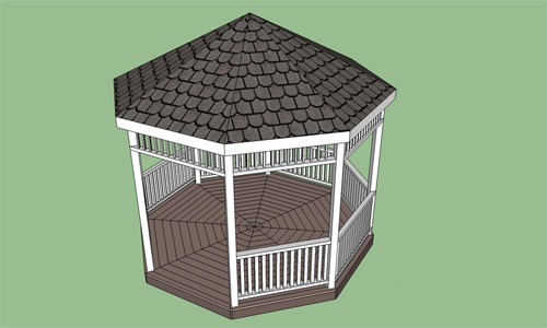 Préparation du matériel et des outils pour monter un kiosque octogonal; comment installer des étagères verticales en bois; comment faire le sol et la clôture du gazebo; comment monter le toit du gazebo.