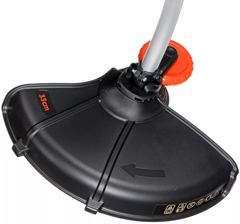 - La position de la tête de coupe change à des points fixes - il est parfois difficile de trouver le bon, et vous devez lever le taille-bordure avec vos mains (il n’ya pas de réglage en douceur).