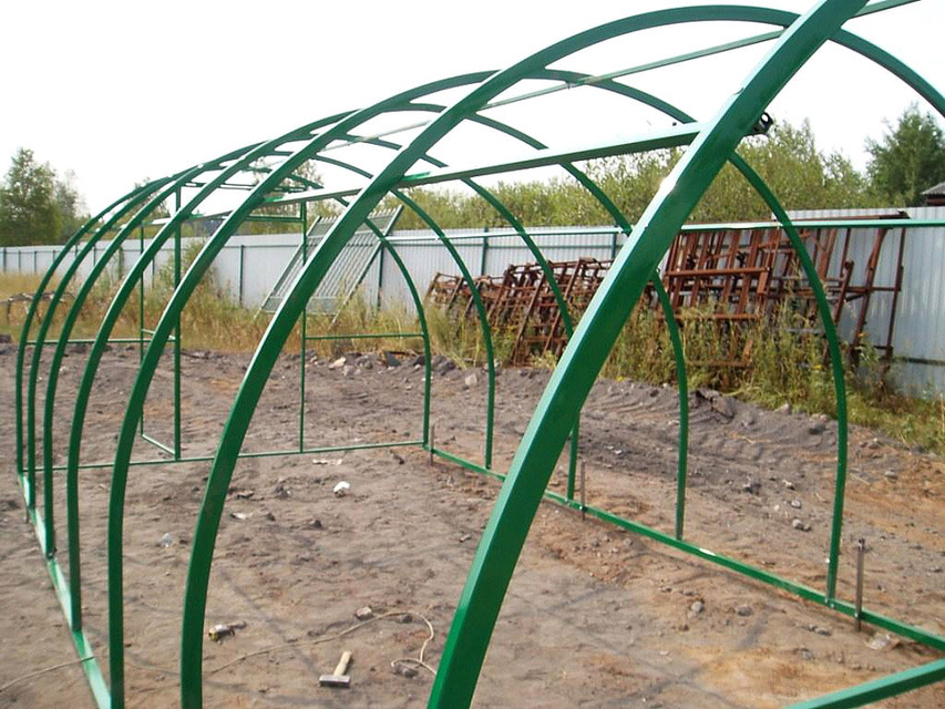 Le cadre porteur, soudé à partir d'un tube en acier de section transversale rectangulaire, se caractérise par sa durabilité, sa résistance élevée aux charges mécaniques constantes et variables. Son principal inconvénient est la tendance à la corrosion et la nécessité de protéger les pièces de la rouille. Le cadre de la serre est assez compliqué à fabriquer, ce qui détermine un coût élevé. Les arcs de telles serres ne sont composés que de quelques éléments et peuvent même être entiers.