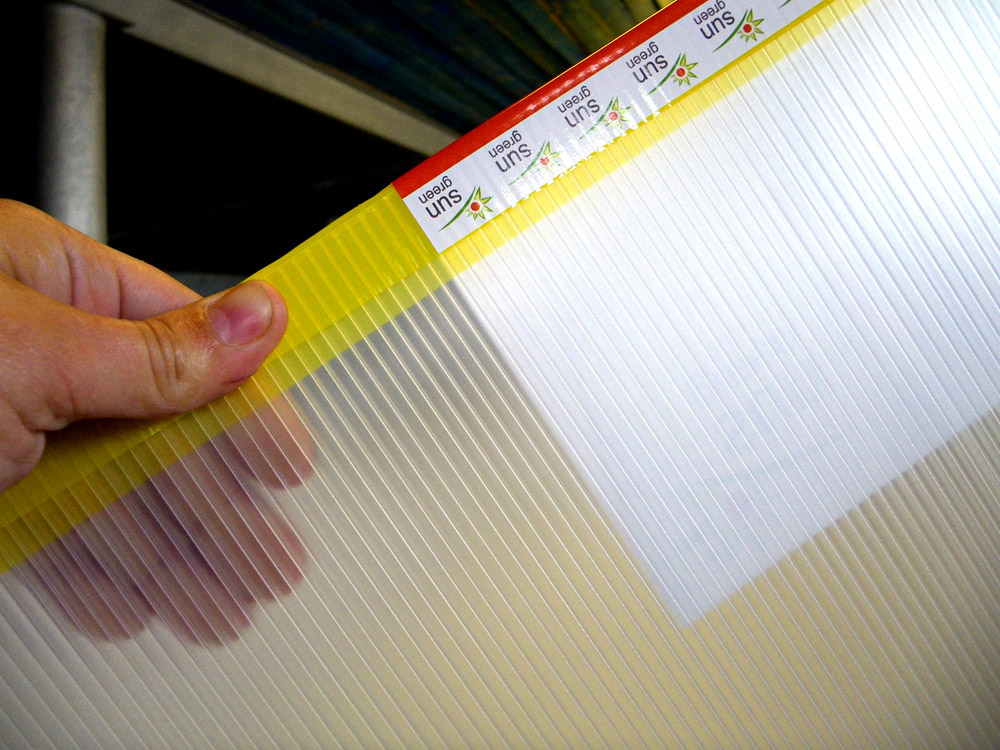 Le polycarbonate cellulaire de haute qualité présente d'excellentes caractéristiques de transmission sélective de la lumière. Il absorbe presque complètement le rayonnement ultraviolet d’une longueur d’onde inférieure ou égale à 400 nm, le plus dangereux pour les plantes et permet une transmission maximale des rayons visibles et infrarouges. Cela contribue à l'effet de serre.