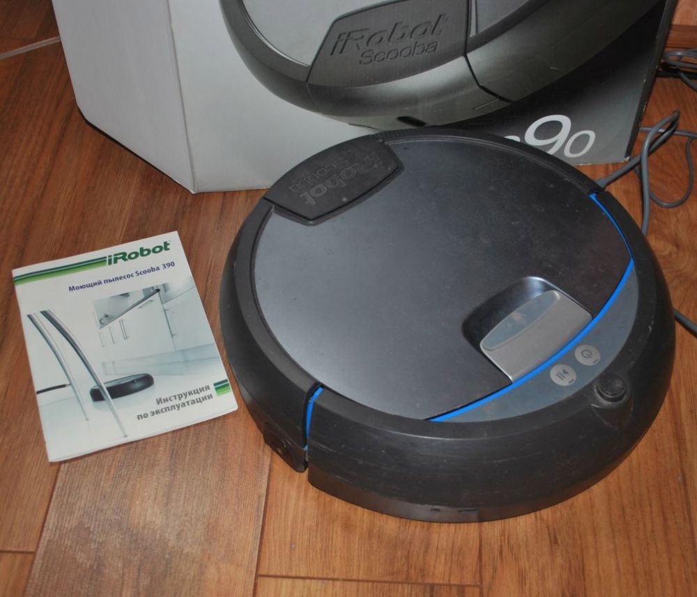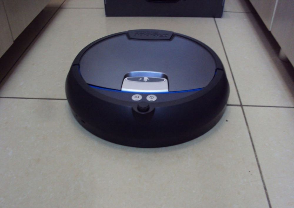 Le robot peut essuyer le sol. Pour ce faire, une palette est posée sur son abdomen, une serviette en papier y est fixée avec du velcro. Il doit être mouillé avant de démarrer le robot. Ainsi, il essuie le sol dans une pièce.Avant de courir dans une autre pièce, la serviette doit être humidifiée, elle sèche.