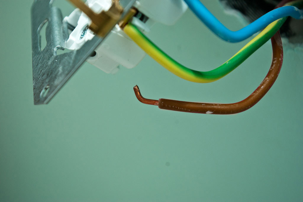 Vous avez probablement remarqué que l'isolation des fils est colorée différemment: le fil brun est la phase, le bleu est le neutre et le jaune-vert est la terre. Le codage couleur des fils dans les différents pays peut varier. Chacun de ces fils doit être connecté à son propre connecteur.