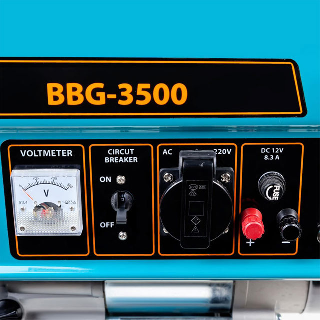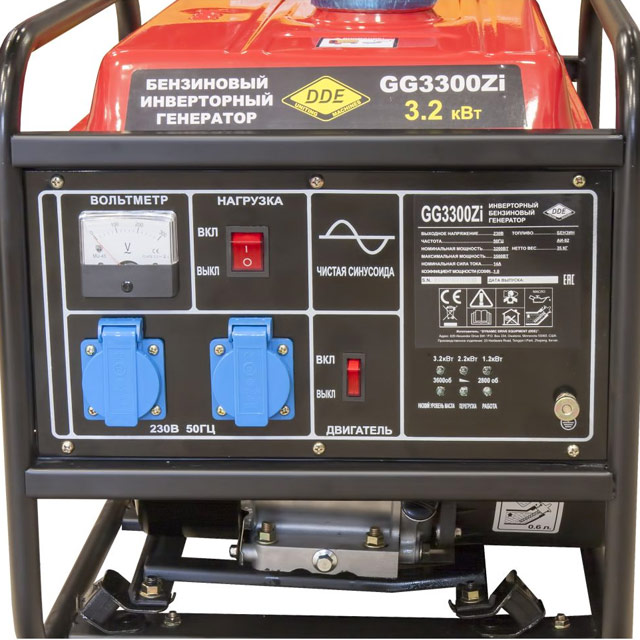 Générateur monophasé avec puissance nominale et maximale de 3,3 et 4 kW, respectivement. Il est équipé d'un moteur fabriqué par Mitsubishi avec une cylindrée de 296 cm³, mais le niveau sonore ne dépasse pas le passeport de 68 dB.