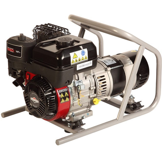Mini-centrale monophasée autonome à essence. Il est équipé d'un moteur à combustion interne à quatre temps d'une cylindrée de 196 cm³ et d'un groupe électrogène d'une puissance nominale et maximale de 2,5 et 2,8 kW.