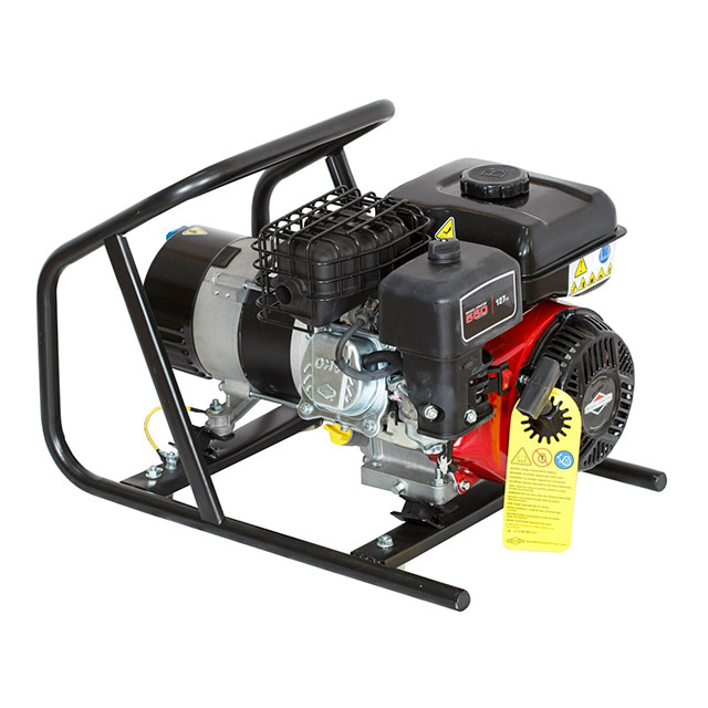 Générateur d'essence monophasé de 1,6 kW. Il est entraîné par un moteur à combustion interne à quatre temps d'un volume de 196 cm³, à 3600 tr / min.