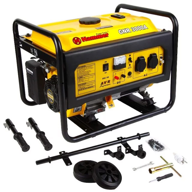 Hammer GNR3000 Et c'est l'un des modèles premium, ce qui implique le fonctionnement de l'appareil pendant un grand nombre d'heures. Préférez les analogues moins chers présentant des caractéristiques similaires si le générateur est utilisé dans une zone de coupure de courant fréquente ou en son absence complète.