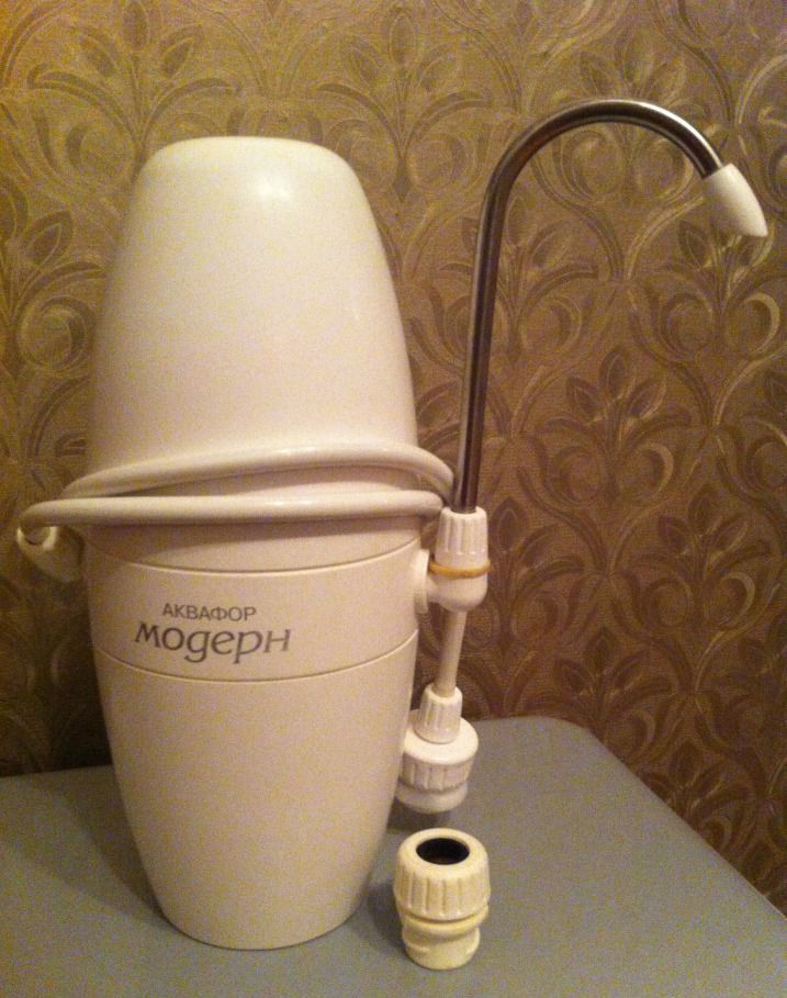 Pendant longtemps, ils ont réussi avec un seul filtre, en général, ils en ont été satisfaits.Mais un jour, ma femme a assisté à une action dans laquelle le fabricant de filtres Aquaphor Trio a été vendu à un prix très compétitif. Il a pris feu et a décidé de l'acheter.