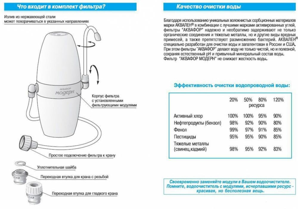La grue tourne à 360 degrés, vient complet avec un filtre, en termes de qualité, il est assez fort et fiable. Les filtres changent une fois par an, bien sûr, ils ne sont pas bon marché, mais la qualité de l'eau en vaut la peine. La seule chose qui me dérange un peu dans le Trio Aquafore est que je ne suis pas sûr à 100% que l’eau soit complètement nettoyée, je ne l’ai pas testée et je ne peux pas vous le dire avec confiance.