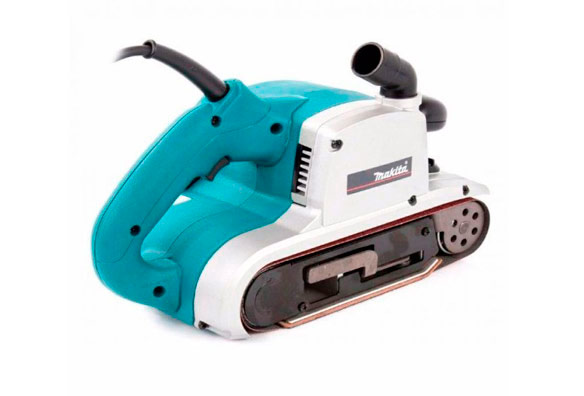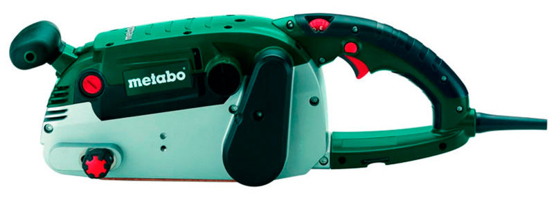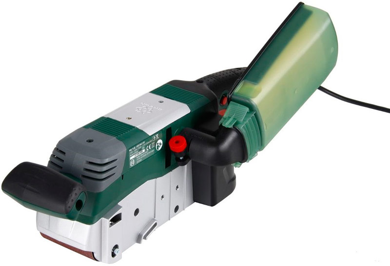 Grinder 1200 W avec un grand sac à poussière. La largeur de la bande est de 100 mm. Il est complété par une poignée supplémentaire. Courroie jusqu'à 500 m / min. La masse est de 5,7 kg.