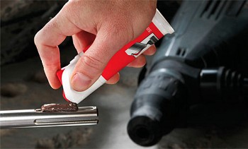 Un cordon d'alimentation de 5 m augmente la mobilité de l'opérateur sur le lieu de travail. Une jauge de profondeur et du lubrifiant pour la boîte de vitesses sont fournis. Il y a une valise pratique pour le transport.