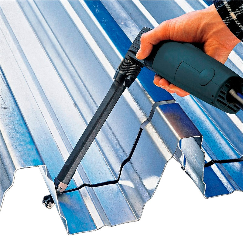 - Avec un outil électrique de ce type, il est possible de couper facilement non seulement de la tôle lisse, mais également des produits profilés (par exemple, une tuile métallique, du carton ondulé, etc.);