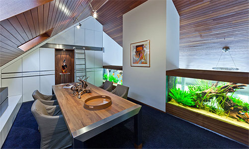 Dans ce matériel: comment utiliser l'aquarium à l'intérieur de différentes pièces; aquariums à cloisons; aquariums construits dans le mur; aquariums architecturaux; les emplacements d'aquarium les plus insolites de la maison.