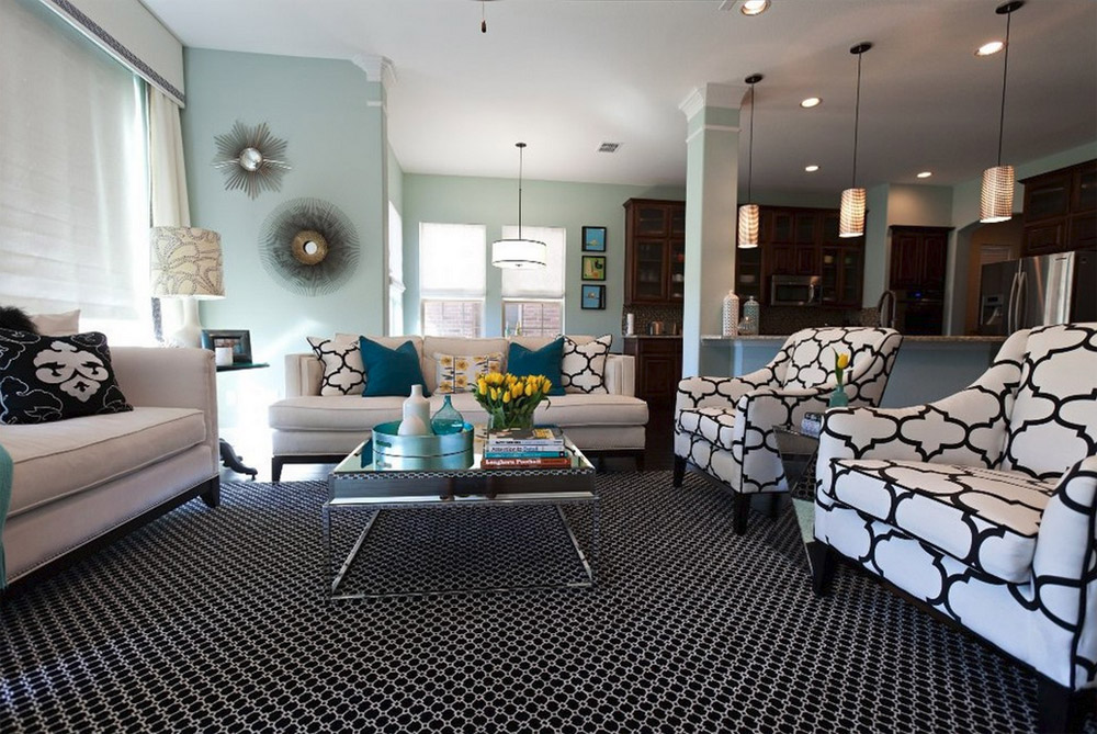 Quelle est la couleur turquoise de l'intérieur? Avec presque n'importe qui. Combinez-le avec des tons marron clair et vous donnerez à la pièce un look vintage. Mélangez-le avec du blanc froid et vous obtenez la plage comme à la maison! Mais il existe des couleurs qui ne sont pas simplement bonnes, mais en parfaite harmonie avec le turquoise. L’un d’eux est l’orange, qui ne fait que aveugler, placé dans une pièce blanche immaculée, à côté des éléments turquoises. La chaux verte peut également être un excellent ajout à la turquoise, car elle apporte à la fois la chaleur du jaune et le dynamisme du vert. Les motifs jaune doré et noir et blanc qui accompagnent la turquoise créent le style chic et ancien d’Hollywood dans la maison. Une simple combinaison de différentes nuances de cette couleur peut conférer à votre maison un aspect attrayant en Méditerranée.