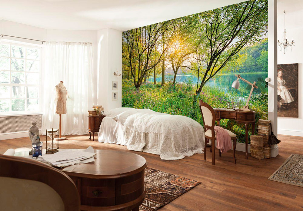 Les images en perspective sont une aubaine pour les petits espaces. Parmi les images de la nature, il y a beaucoup de photos qui vous emmènent au loin. Ils conviennent très bien aux chambres décorées dans un style écologique. Leur décor et leur décor sont composés de matériaux naturels: bois, pierre, bambou, laine, jute, vigne. Les plantes vivantes sont les bienvenues dans de tels intérieurs, qui complètent harmonieusement l’atmosphère en soulignant l’unité de l’homme avec la nature. Lorsque vous choisissez des peintures murales dans un style écologique, vous devez porter une attention particulière aux photographies de la forêt, aux paysages marins, aux vues de la ville noyées dans la verdure.