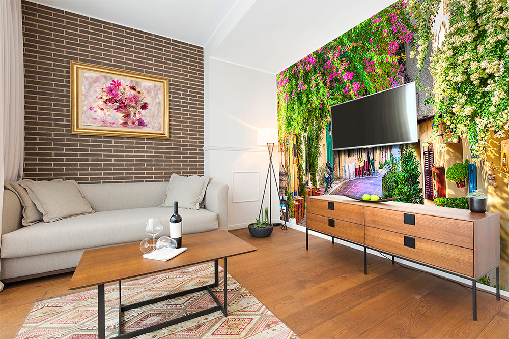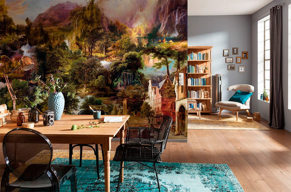 Si la pièce est petite ou si sa forme présente certains inconvénients, cette situation peut être corrigée à l’aide du papier peint avec certaines compositions. Une expansion visuelle de la pièce peut être obtenue en sélectionnant une image avec une composition spatiale ouverte ou centrée sur la perspective, avec ce que l’on appelle l’effet 3D. Les peintures murales 3D sont parmi les plus récentes.