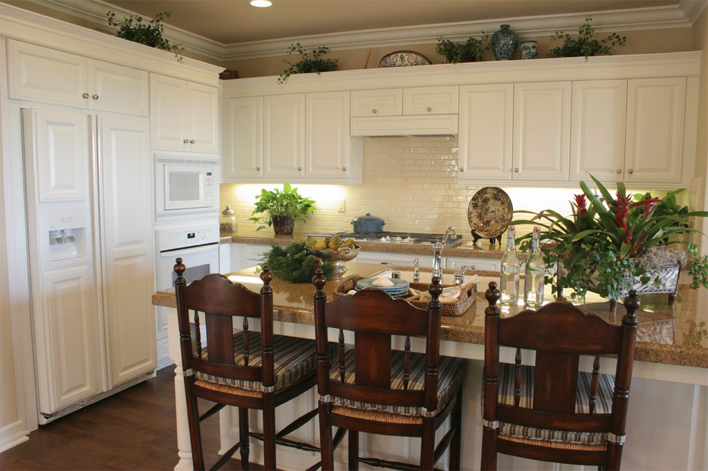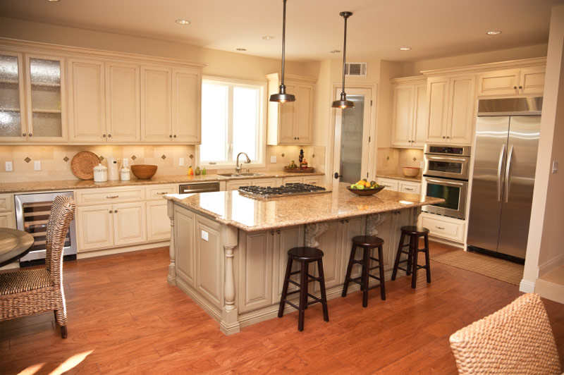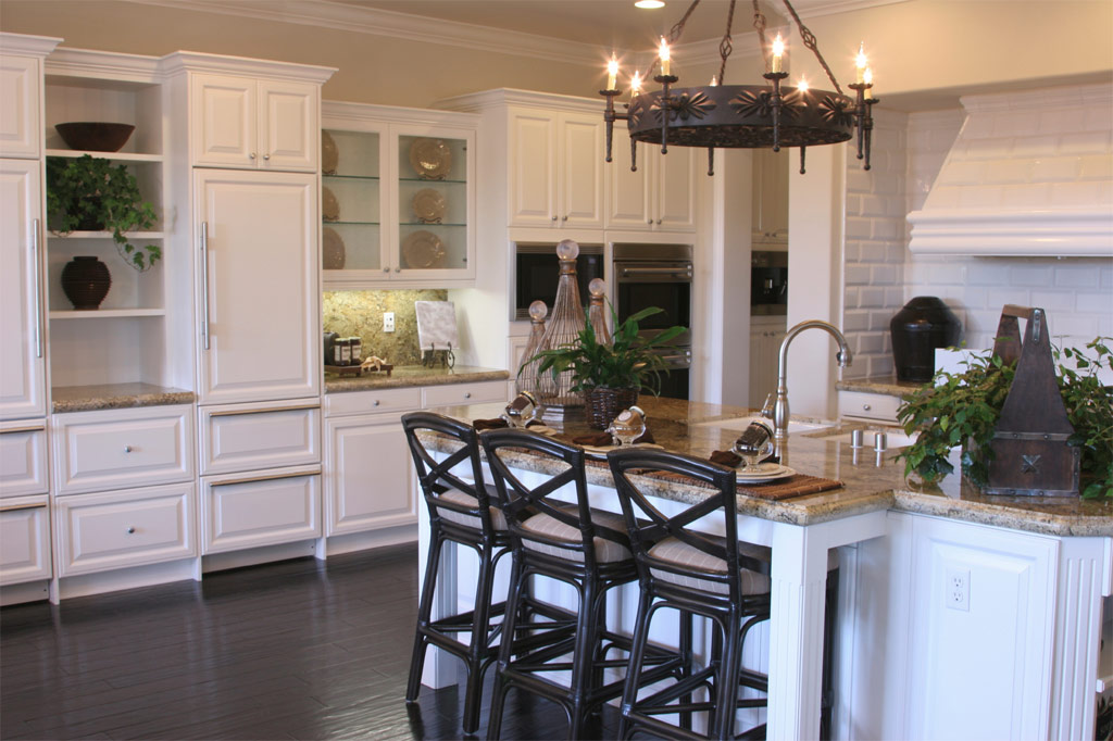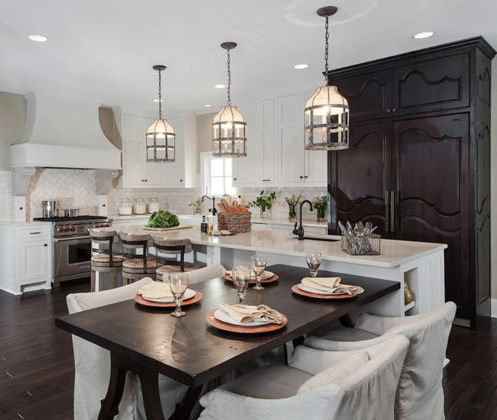 La couleur blanche ravissante des armoires et des comptoirs de cette cuisine contraste avec le plancher en bois sombre et la même table d'îlots de couleur (Source: Zillow DigsTM).