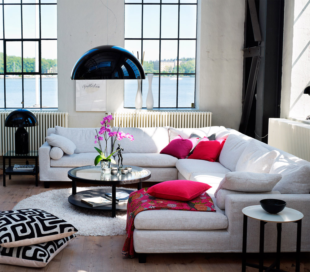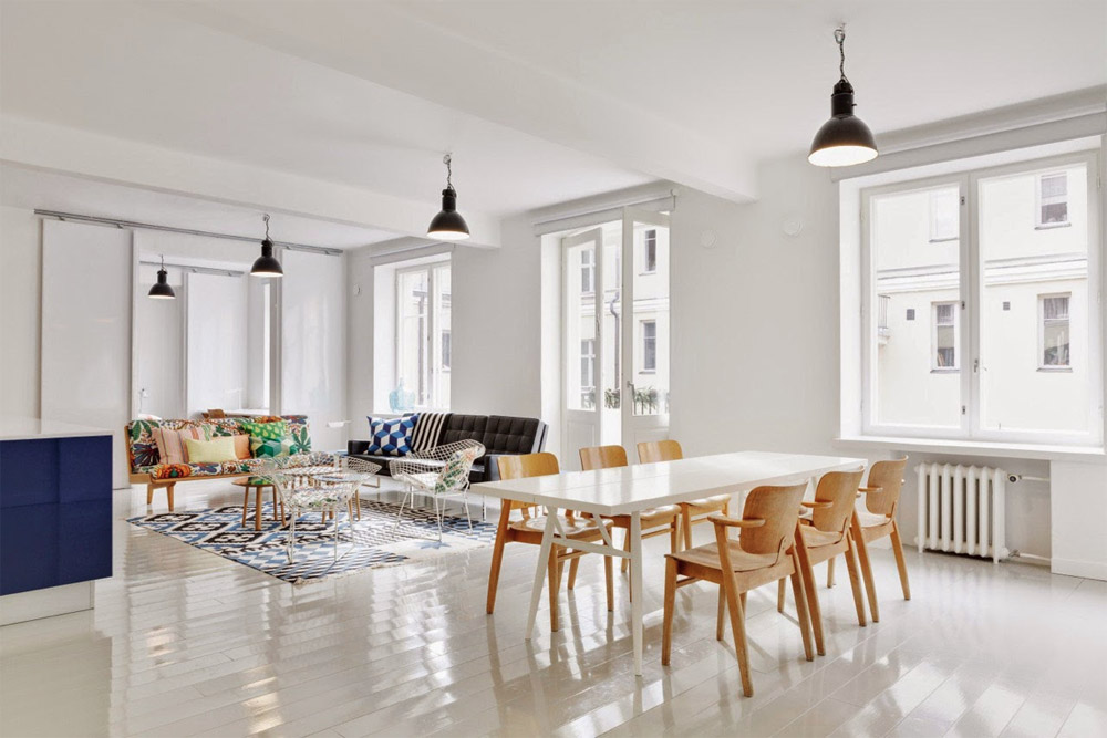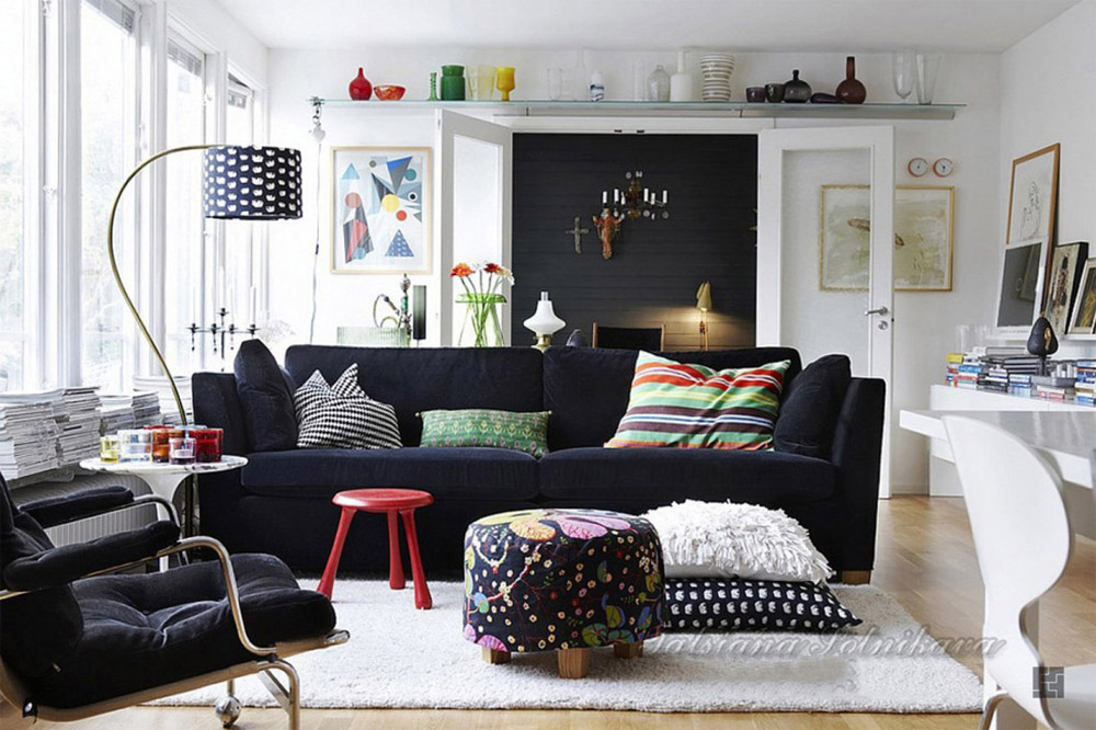 Si l'intérieur était fabriqué exclusivement en blanc ou en couleurs pastel, il aurait l'air un peu ennuyeux et inexpressif, sans visage et terne. Le point culminant du style scandinave est l’utilisation d’accents de couleurs vives. Il peut s'agir d'images frappantes, d'abat-jour, d'oreillers, de tapis ... oui, de n'importe quoi. L'essentiel est de ne pas en faire trop! Votre objectif est de faire revivre l'intérieur avec quelques détails intéressants. Utilisez des rouges bleus, verts, roses ou plus vifs.