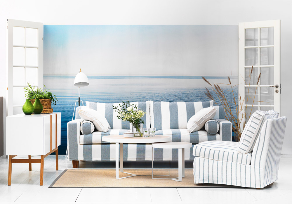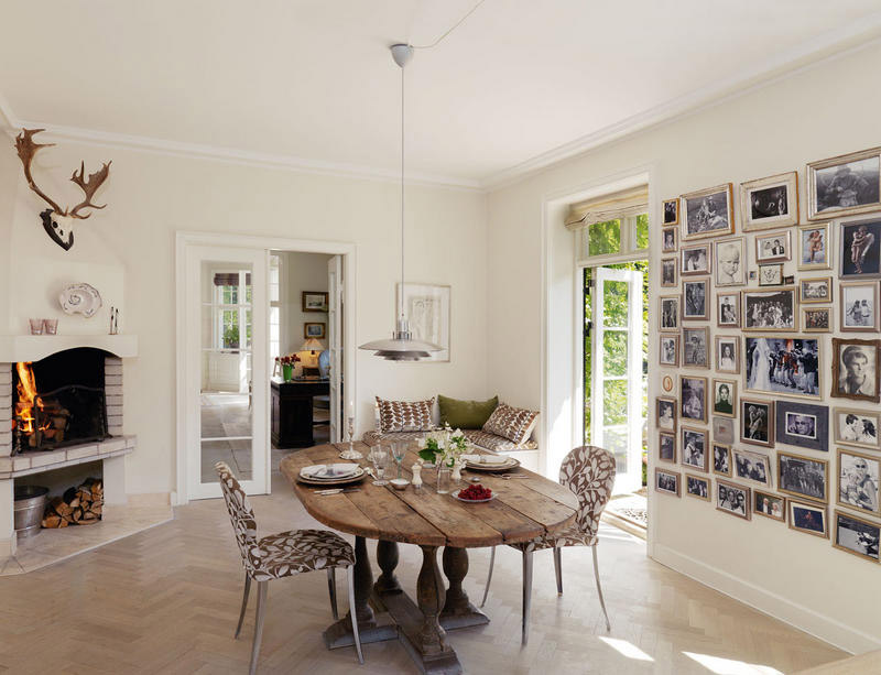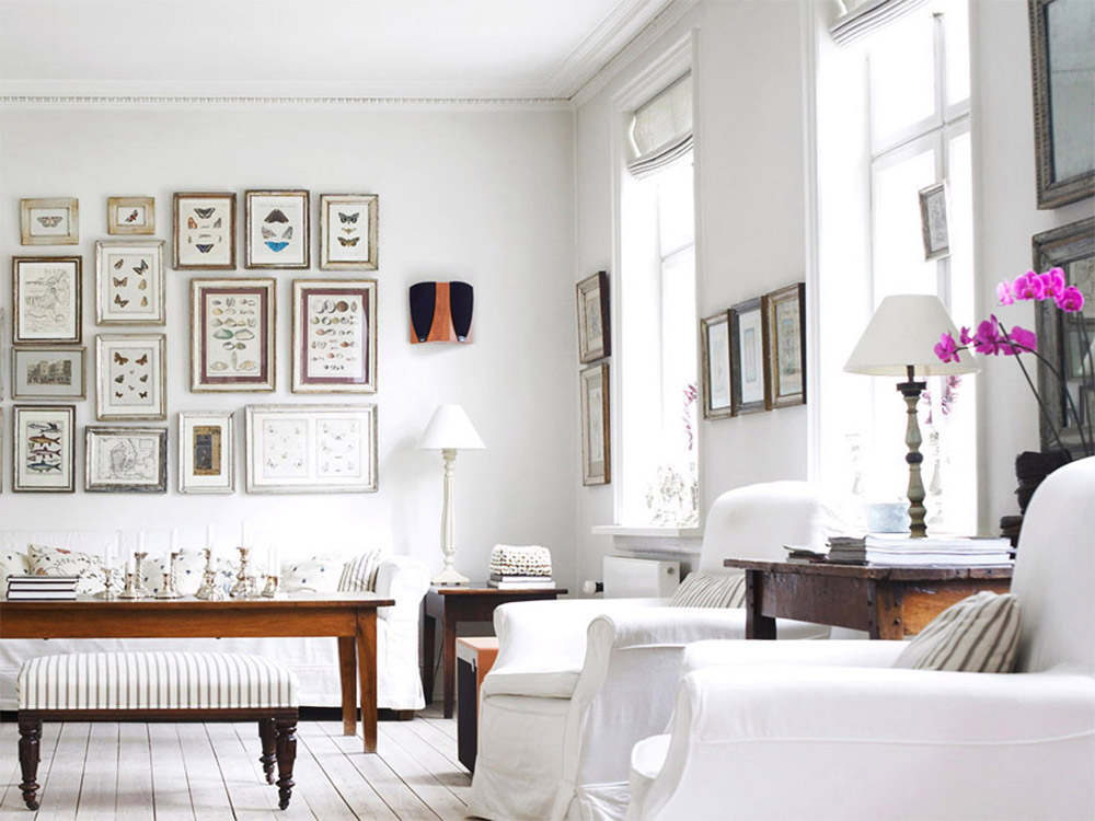 Les Scandinaves ne sont pas indifférents au thème marin. Pour souligner les traditions des peuples du nord, vous pouvez accrocher dans la salle des peintures représentant des navires ou des habitants de la mer profonde. Une caractéristique des intérieurs scandinaves est le placement sur les murs de photographies, en particulier de photos de famille. Les paniers en osier et les fleurs fraîches apporteront également une atmosphère chaleureuse et confortable.
