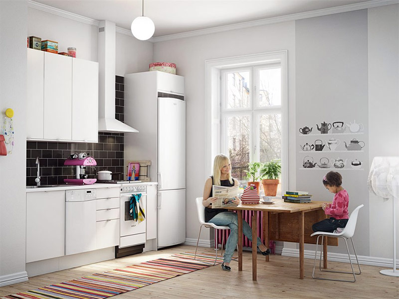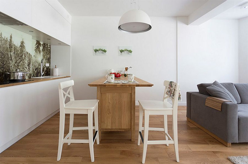 La cuisine scandinave trouve sa place même dans les plus petites pièces (de Seta's Egue).