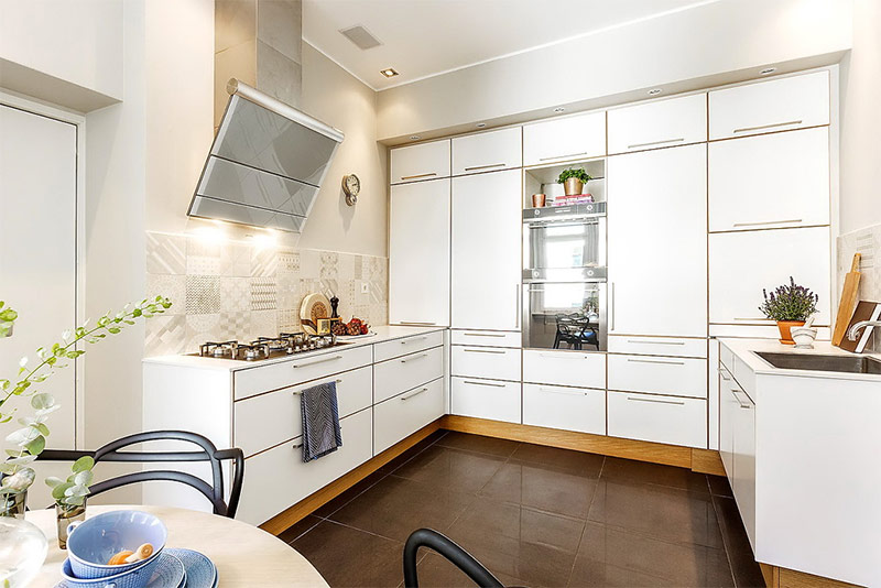 Si vous avez une petite cuisine (et la plupart d’entre nous l’avons) et que vous devez vous battre pour chaque centimètre carré, le style scandinave est exactement ce dont vous avez besoin. Contrairement à beaucoup d'autres styles, Scandinavian convient à la fois aux très petites cuisines communes et à celles qui ne sont pas privées de mètres carrés! Puisque le minimalisme, la modération et la bonne organisation de l'espace font partie intégrante de ce style, vous n'aurez aucun problème. Les armoires murales modulaires, les étagères suspendues et les plans de travail ergonomiques, pour lesquels l'efficacité est au-dessus de la forme, constituent la base des cuisines de style scandinave.
