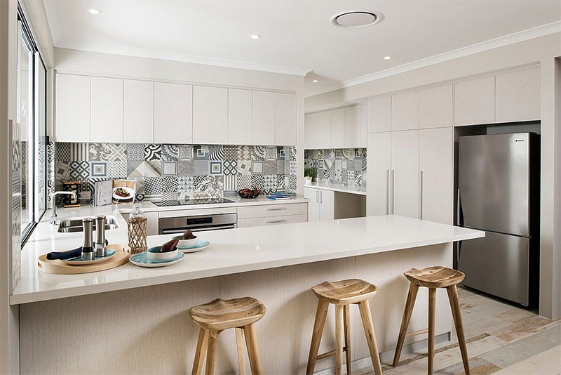 Utilisation étonnamment appropriée des motifs géométriques dans la cuisine scandinave (d'après Int2architecture).
