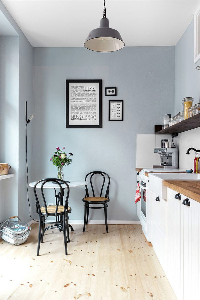 Une cuisine scandinave petite mais élégante avec coin repas (du Studio Cuvier).