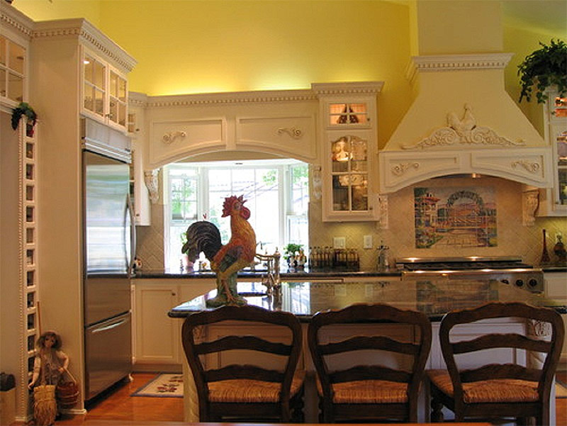 L’attractivité du pays français est liée dans une large mesure à la présence d’accents bizarres «lâches» dans ce style. Et quoi en France pourrait être plus symbolique que le coq gaulois? Dans ce cas, la tâche est de vous limiter: le marché est tellement saturé de toutes sortes de babioles sur le thème du coq qu’il est facile de tomber dans la folie et de transformer finalement votre maison en une ferme de Old MacDonald, issue d’une chanson folklorique anglaise, à l’image de la vieille France. Pratiquez l'art de la retenue: procurez-vous un ou deux objets représentant un coq, par exemple un tapis de cuisine, un pot de biscuits ou une photo.