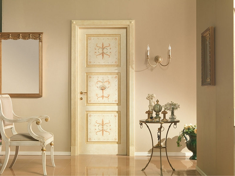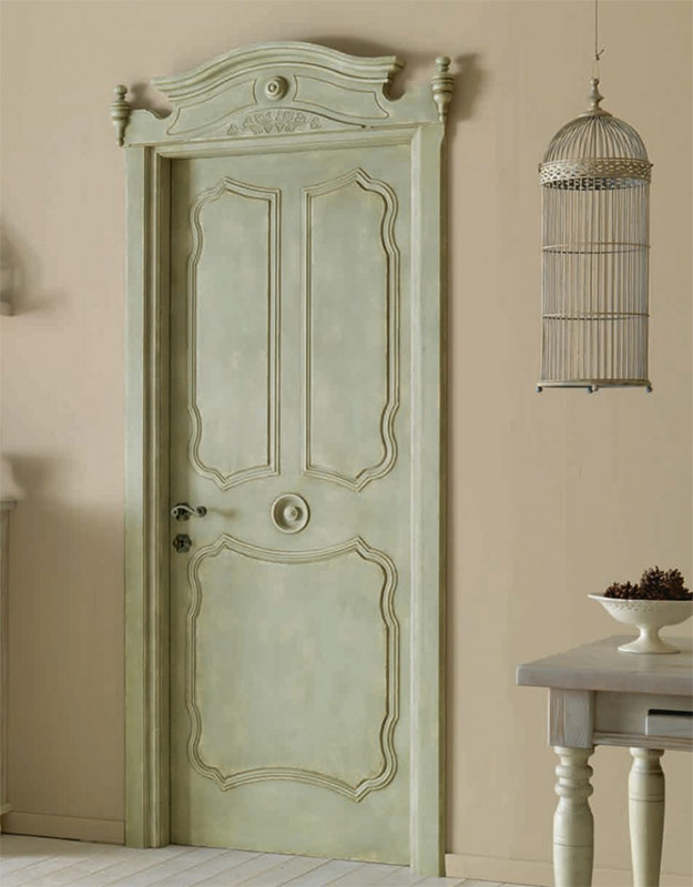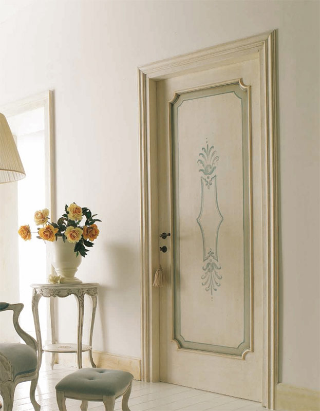 Pour les chambres décorées dans le style provençal, vous devez choisir des portes blanches. Cependant, vous pouvez acheter des portes en bois ordinaires, les peindre avec de la peinture blanche et vieillir artificiellement la surface. Les portes blanches sont souvent décorées de peintures florales.