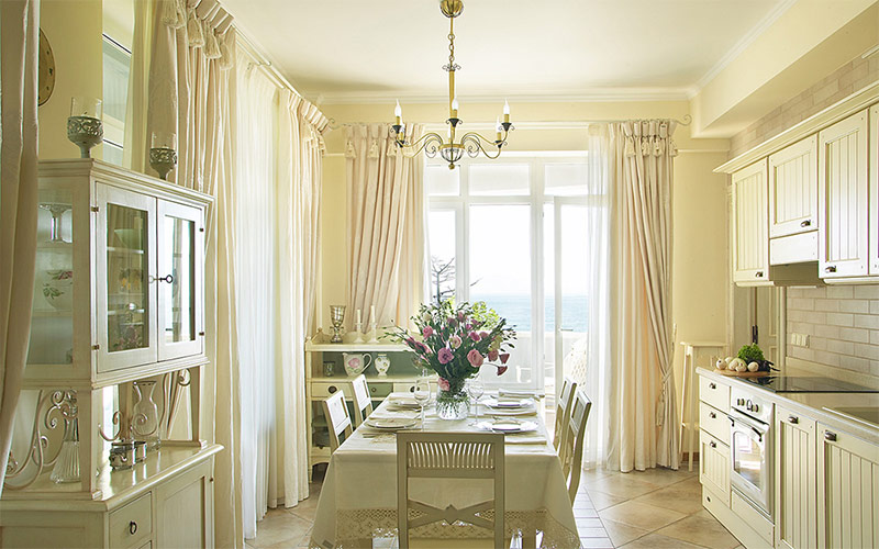 - l'intérieur, décoré dans le style provençal, a beaucoup d'étoffes lumineuses avec des ornements floraux, aucun autre style ethnique n'a une telle abondance de textiles «fleurissants»;