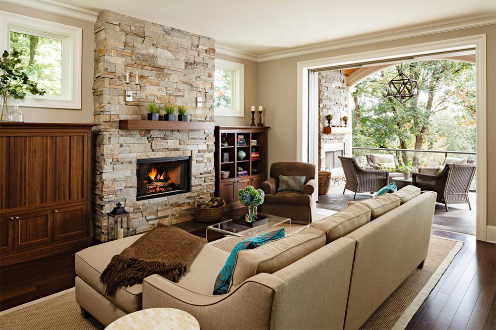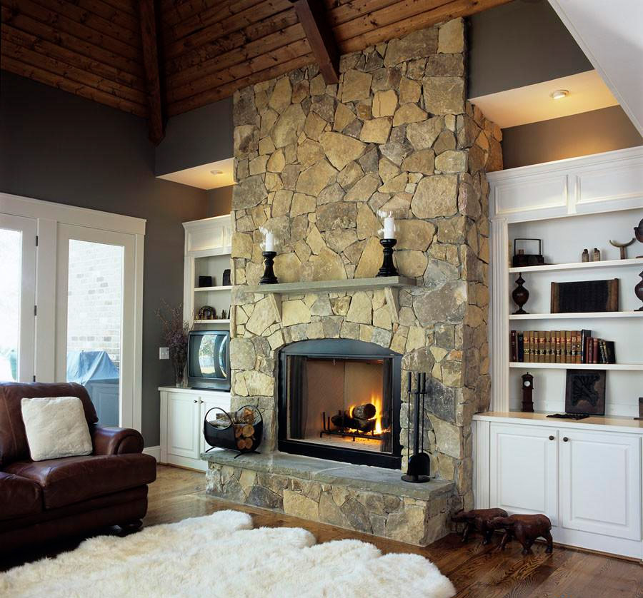 En règle générale, une pièce avec une cheminée en pierre a un aspect quelque peu rustique, ce qui la rend plus confortable. Les matériaux naturels permettent à la cheminée de se démarquer, la rend attrayante. En règle générale, les cheminées en pierre ne correspondent pas aux intérieurs modernes - elles conviennent mieux aux maisons de campagne "rustiques". Cependant, vous pouvez fabriquer un foyer en pierre artificielle, qui de ce point de vue est plus universel.