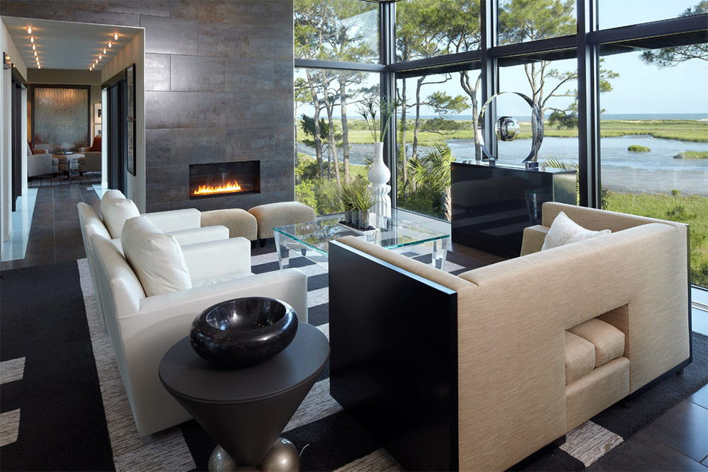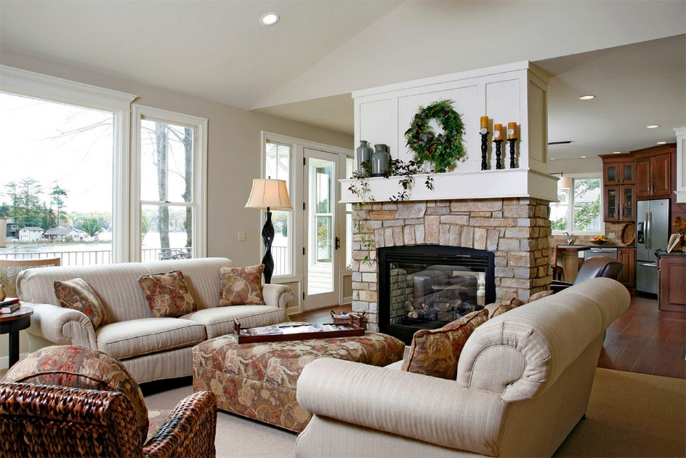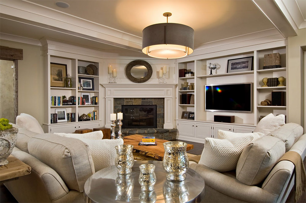 Le foyer peut servir d’élément de liaison principal à l’intérieur du salon, quels que soient son design et son style.