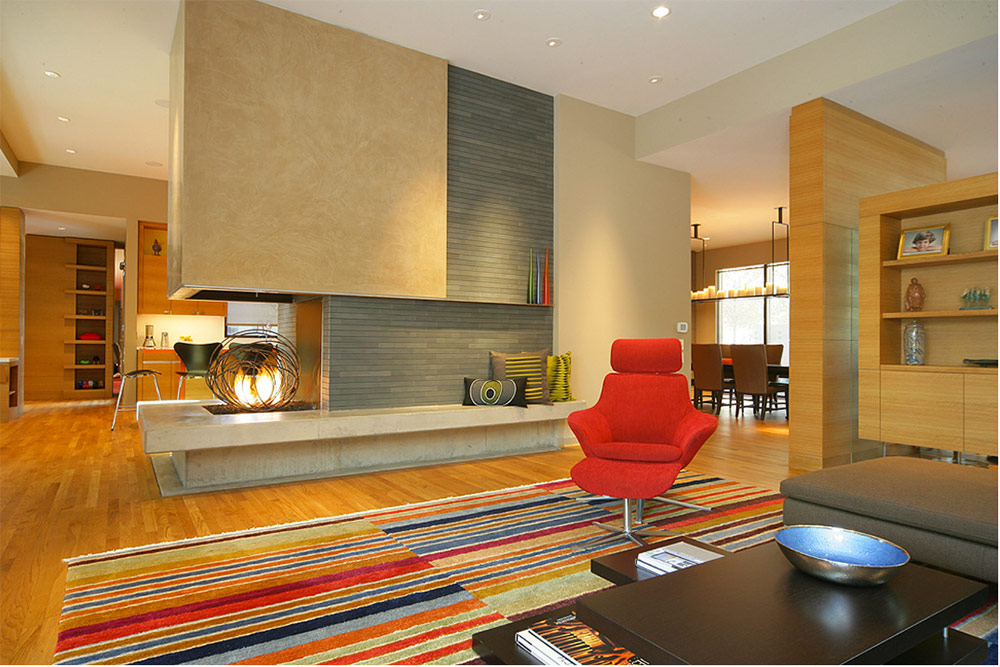 En plaçant une cheminée dans un coin, vous pouvez donner à la pièce une forme plus intéressante.
