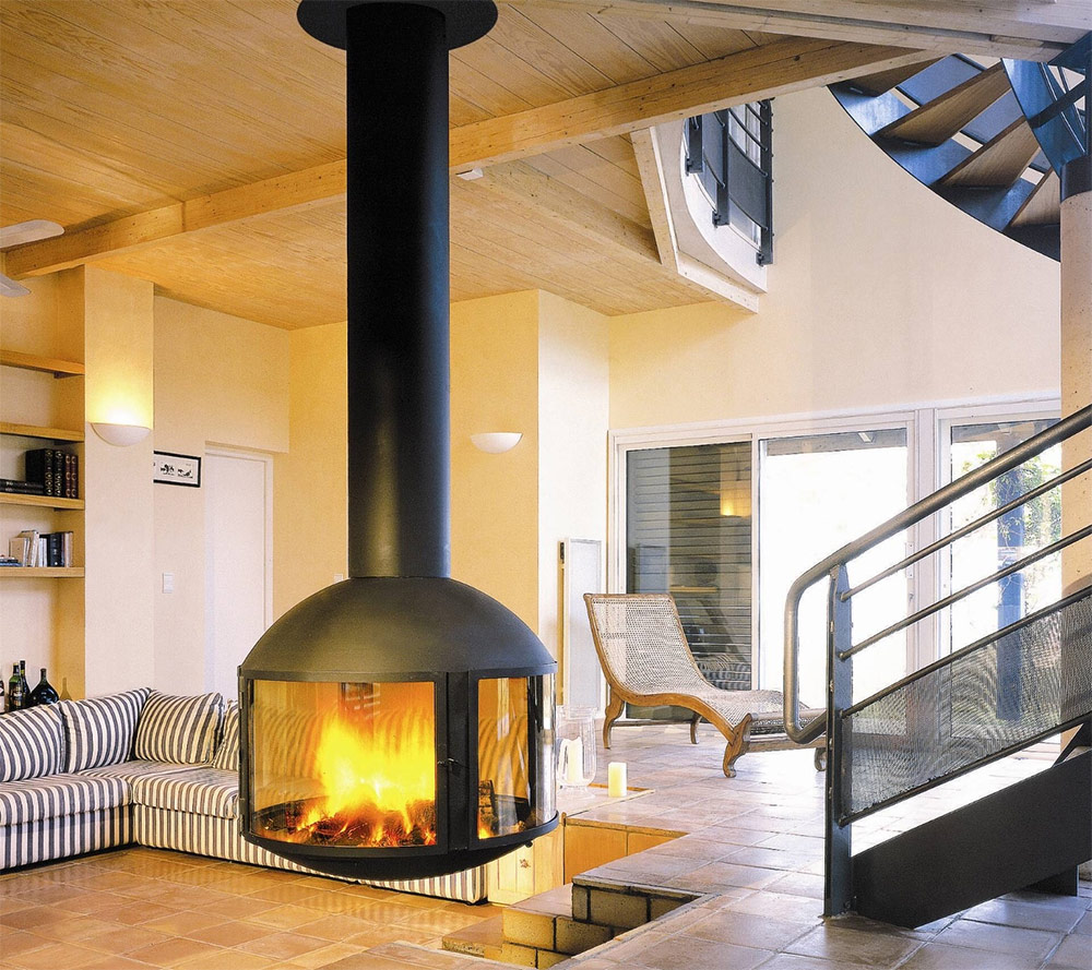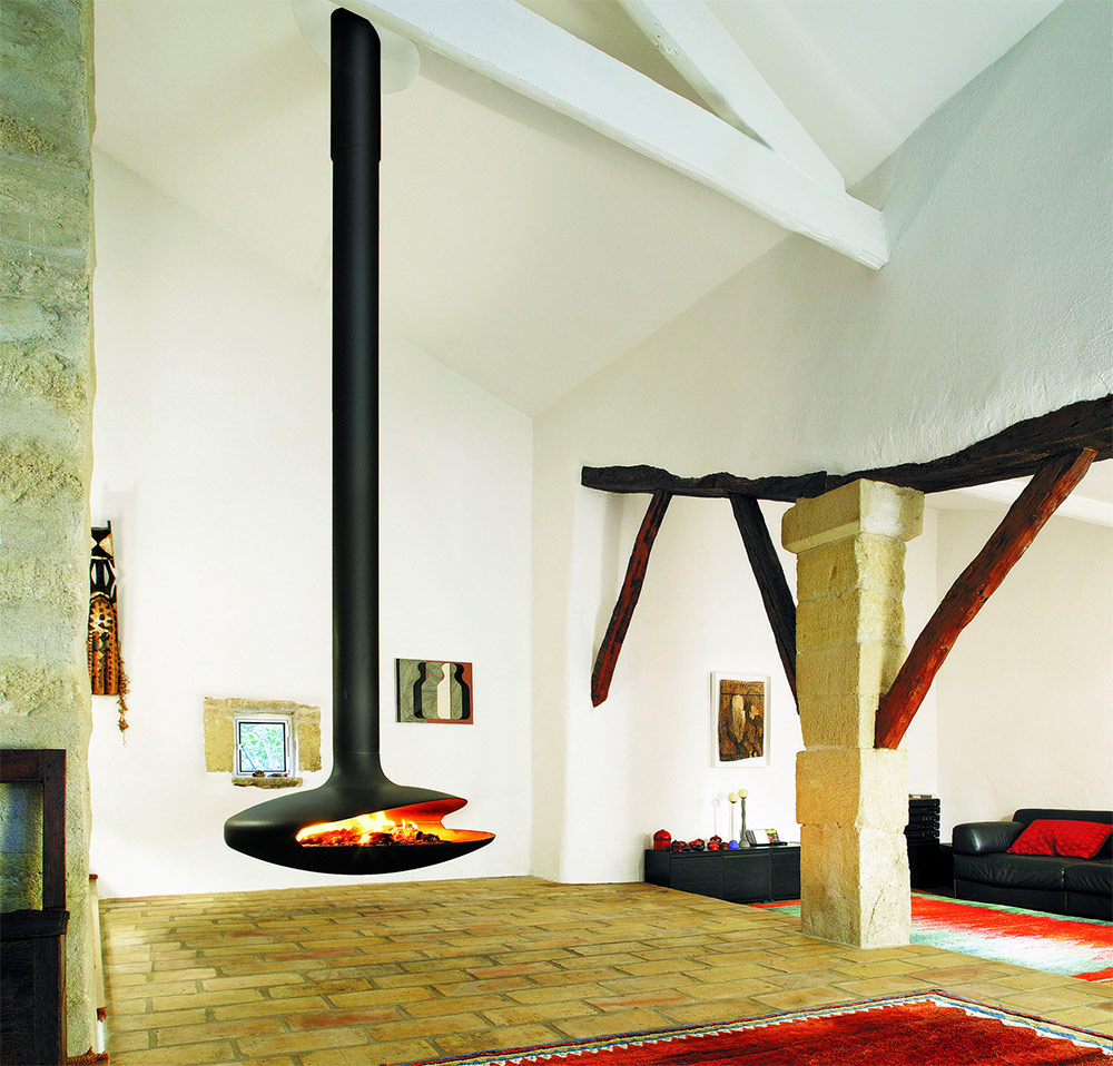 L'avantage principal de la cheminée suspendue est que vous ne dépendez pas des murs pour l'installer.