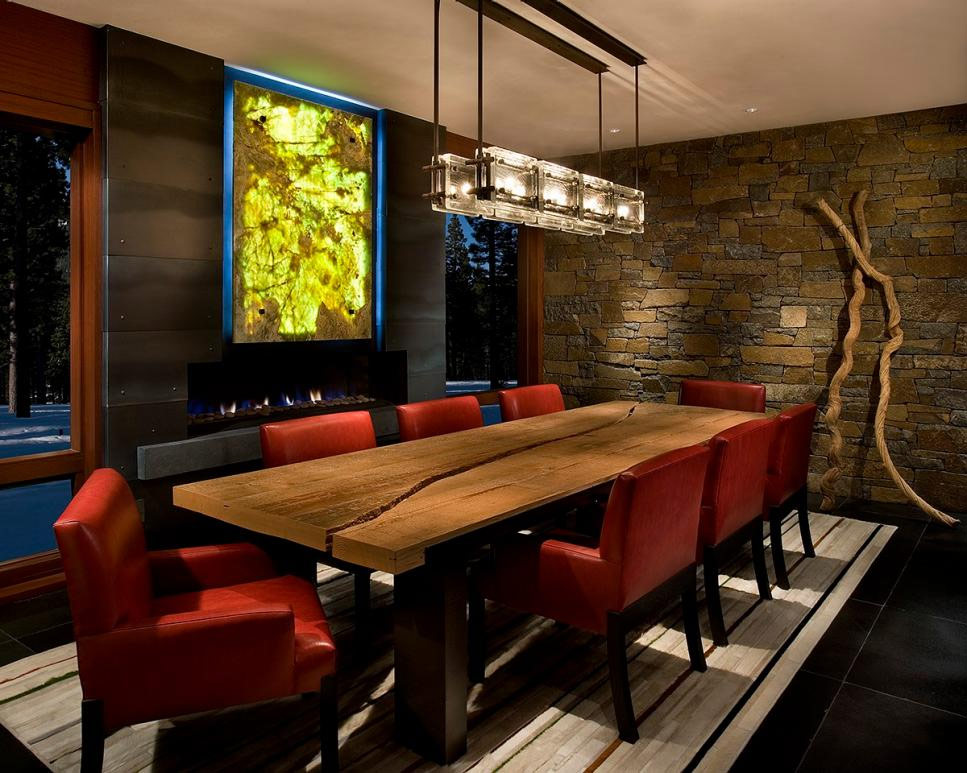 Décorez votre cheminée avec une pierre et laissez-la se précipiter au plafond pour souligner (ou augmenter visuellement) la hauteur de la pièce. Si vous souhaitez mettre en valeur l’attractivité de votre pièce, faites d’une cheminée en pierre le centre de l’intérieur. La pierre peut également être utilisée pour créer des contrastes, elle va bien avec le bois, ajoutant encore plus d’harmonie au design de la pièce.