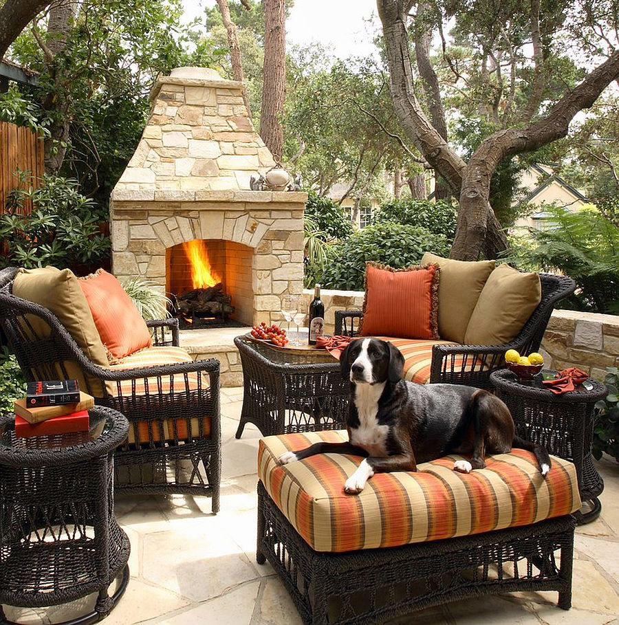Faites de la cheminée l'attraction principale de la cour. Créez un coin salon confortable pour que tout le monde puisse voir la cheminée et profiter de sa chaleur. Le résultat de vos efforts sera un lieu idéal pour les soirées.