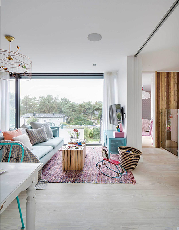 Petit salon de style scandinave élégamment décoré (par Louise de Miranda).