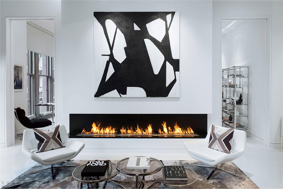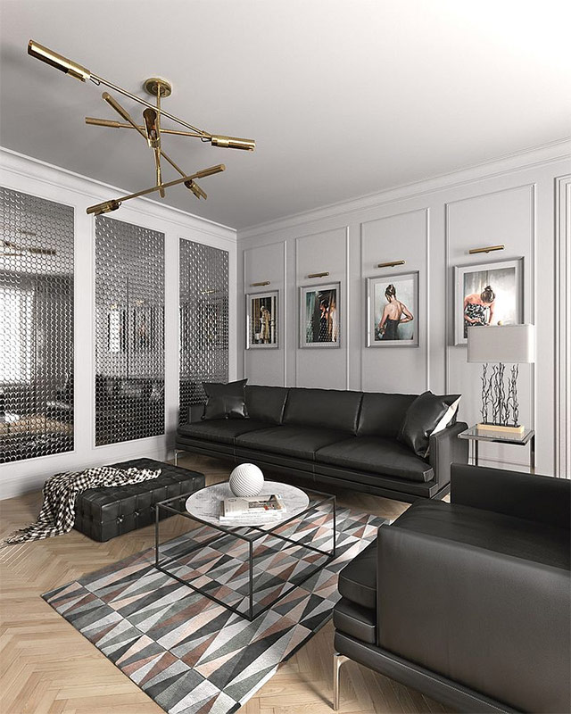 Le fond noir et blanc, avec l’ajout de nuances de gris, convient parfaitement aux salons scandinaves, ce qui semble associer minimalisme moderne et style urbain. Mais rappelez-vous que le noir doit être utilisé avec parcimonie pour simplement réparer l'espace et mettre en évidence certaines caractéristiques architecturales, puisqu'un excès de noir peut rapidement changer l'ambiance et l'attrait de l'intérieur.