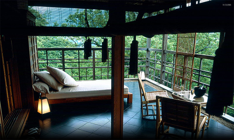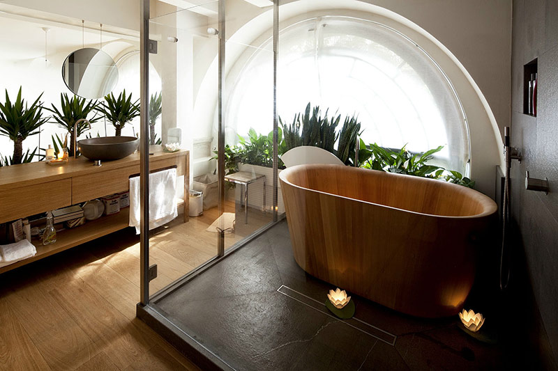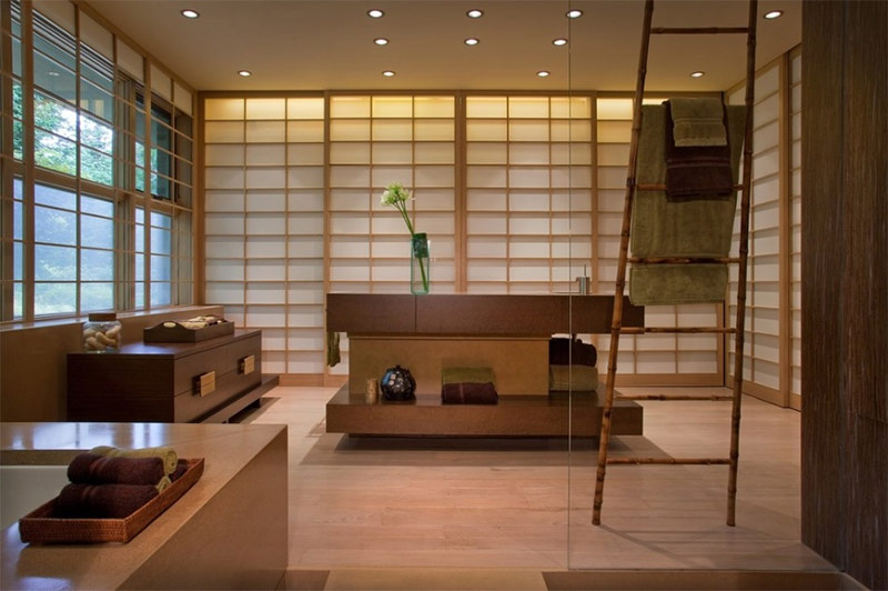 - pour la salle de bain, les lavabos sont souvent choisis en forme de cuvette et de baignoire traditionnelle ofuro en bois (ou de forme similaire).