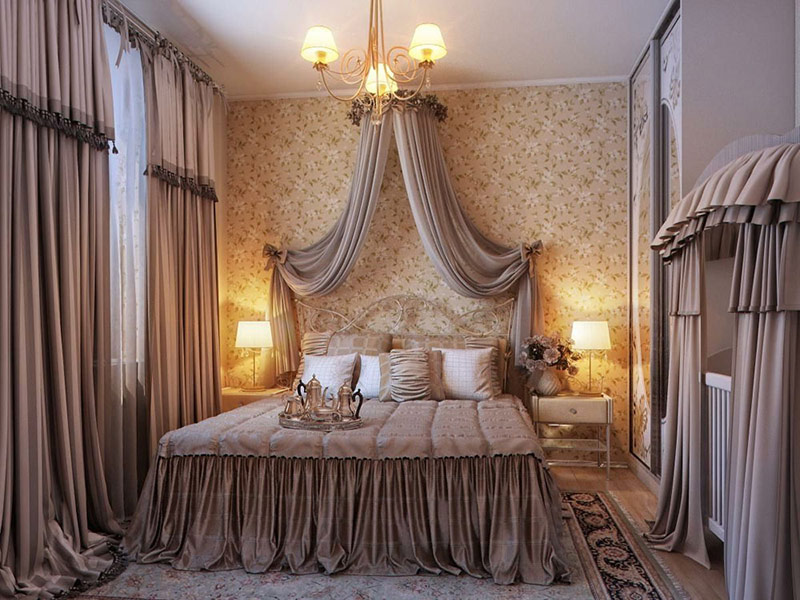 Beaucoup de tissu peut être utilisé pour créer un confort dans la chambre à coucher: