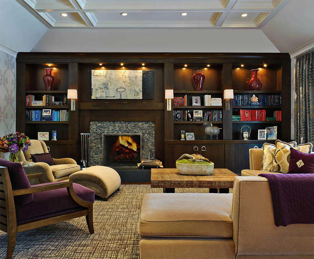 Pour l’intérieur du salon ou du bureau, ils sélectionnent des teintes plus sombres. L'union de brun foncé et d'or semble respectable. La salle est décorée de panneaux de bois en bois laqué naturel, de meubles en cuir aux accents dorés et de lampes de luxe dotées de pieds dorés exclusifs. De plus, des couleurs pourpres et grises foncées sont choisies pour décorer les chambres, en les complétant avec du noir et du blanc.