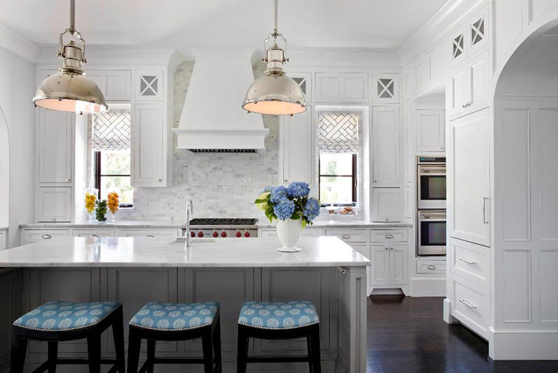 Le thème de la lumière du soleil et de la mer bleue est pertinent pour de nombreux intérieurs modernes. Les concepteurs combinent avec succès les couleurs blanche et bleue en les complétant par un motif de vagues en zigzag.