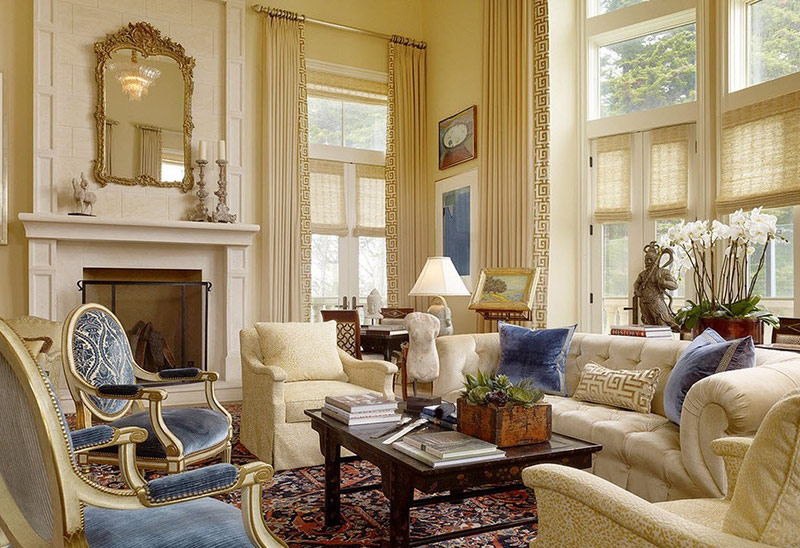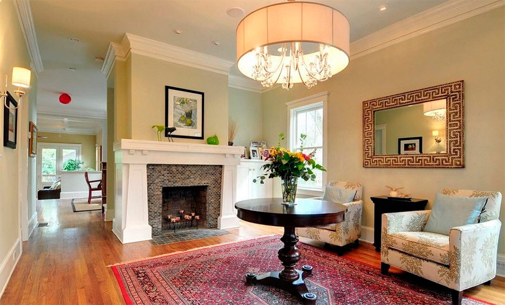 - Le salon est décoré d'une cheminée. Ils la recouvrent de carreaux à motifs ou de carreaux monophoniques.