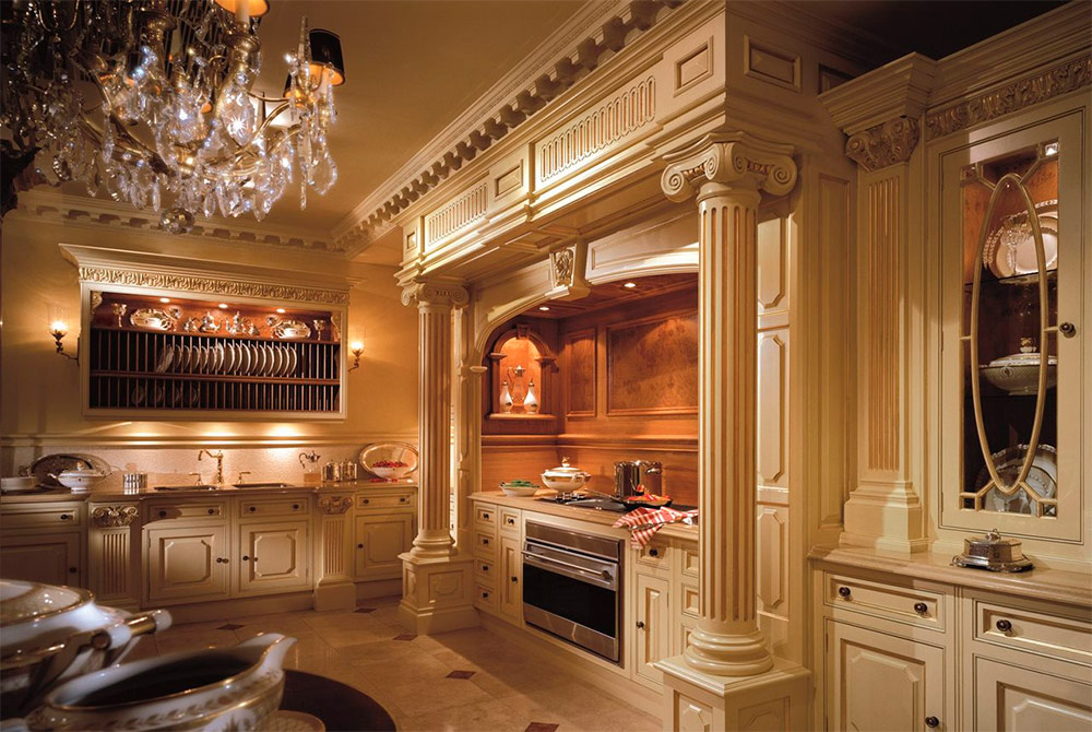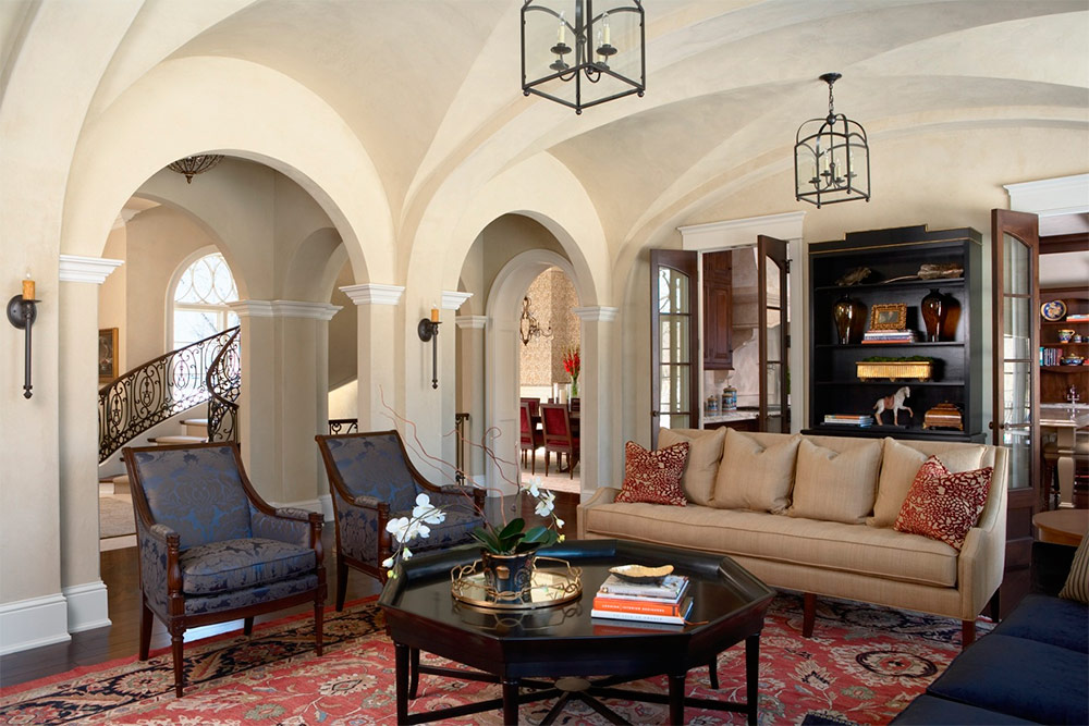 Pour décorer les murs à l'aide de plâtre, maçonnerie, blanchiment à la chaux délibérément inégal. L'essentiel est que les murs ne soient pas lisses. La surface est décorée d'ornements, de fresques, de moulures en stuc, de colonnes et de demi-colonnes. Dans les pièces spacieuses des murs, faites des niches pour les statues ou les fontaines.