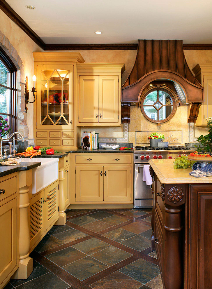 Étouffées, comme fanées par le soleil, les couleurs sont considérées comme caractéristiques: légère colère, bleu ciel, sable, beige clair.