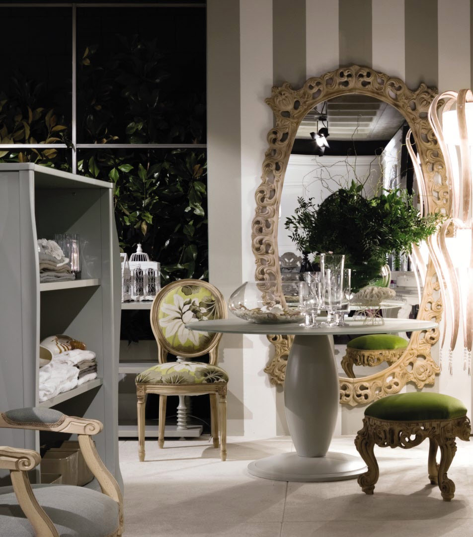 7. Le décor baroque accueille des objets d'art reconnus - peintures d'artistes célèbres des XVIIe et XVIIIe siècles, sculptures de chérubins, filles et garçons nus, tapisseries faites à la main. Pas un seul intérieur baroque n'est complet sans un grand miroir dans un cadre doré chic avec des boucles et des monogrammes.
