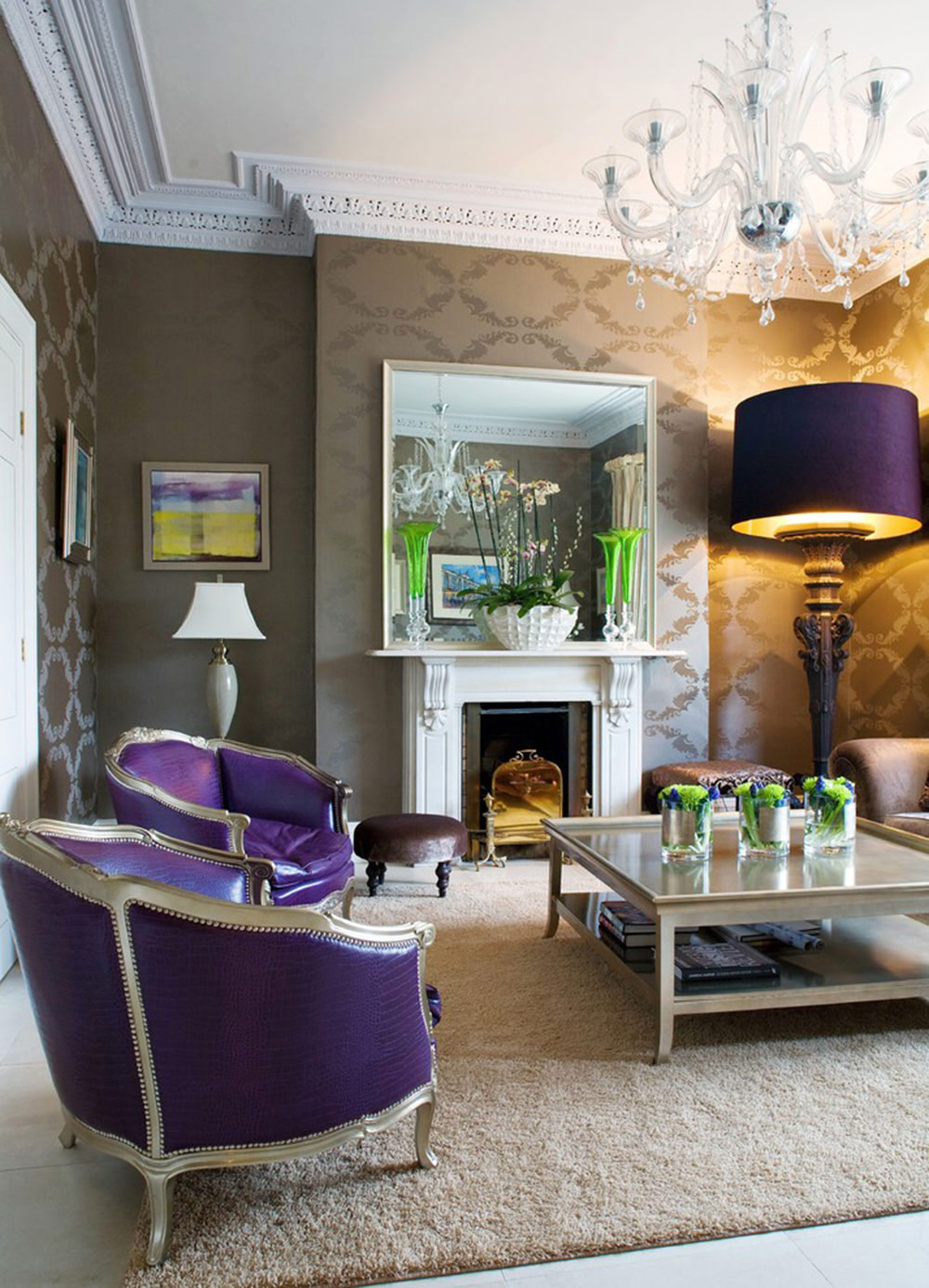 Pour les intérieurs modernes, l'utilisation de couleurs royales sombres est acceptable - bleu velours et bordeaux, brun chocolat et vert en sourdine.