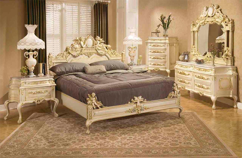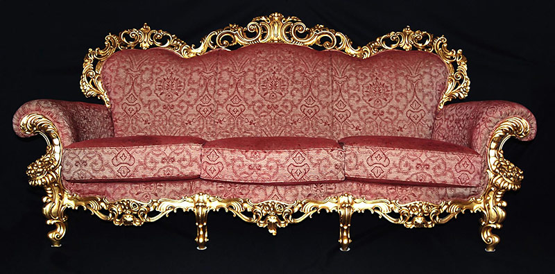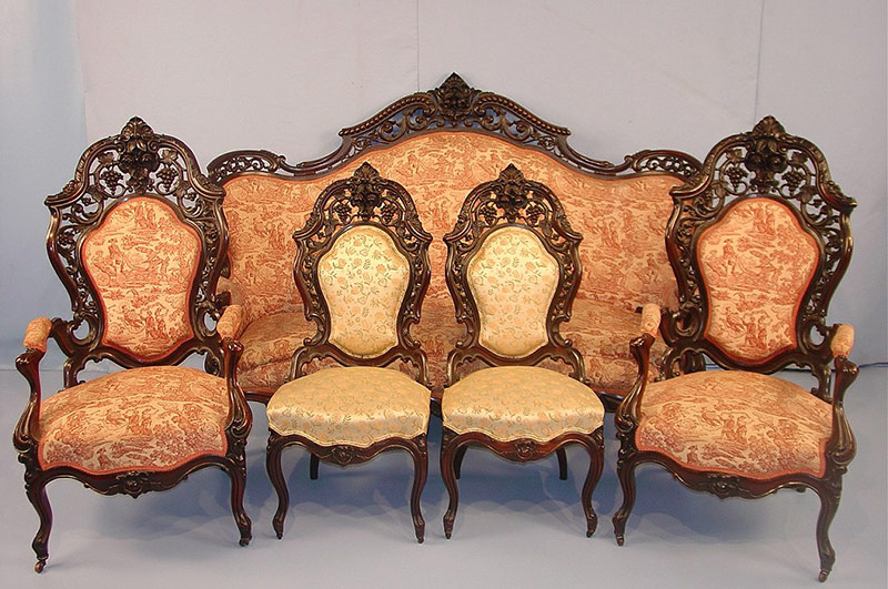 - Les intérieurs rococo sont remplis de meubles faits main reconnaissables, décorés de sculptures d'art, incrustations, dorures, recouverts de tissu à motifs en soie;
