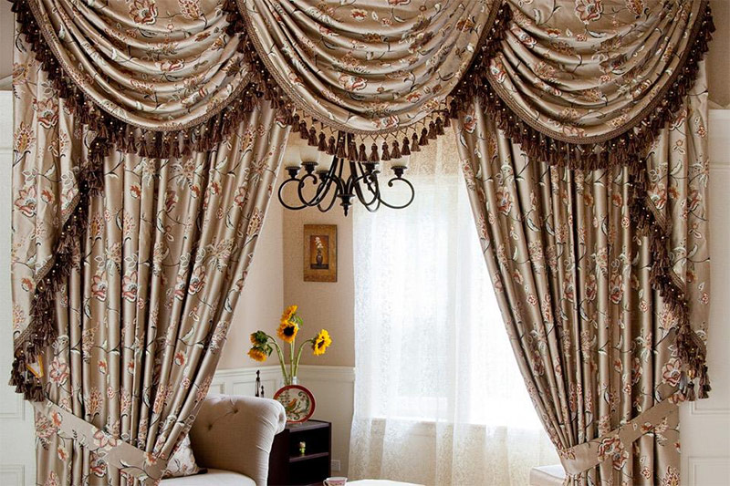 Les textiles rococo ne sont pas aussi lourds et sombres que les textiles baroques. Cependant, il conserve sa forme, son volume, son abondance de tissu et son motif. Pour la décoration des fenêtres, choisissez de beaux rideaux multicouches avec des lambrequins. Sur le lit, achetez un couvre-lit matelassé avec broderies et franges. Choisissez des coussins avec une belle décoration, des broderies et des accents textiles. Décorez la salle à manger avec une nappe assortie au rembourrage des chaises.