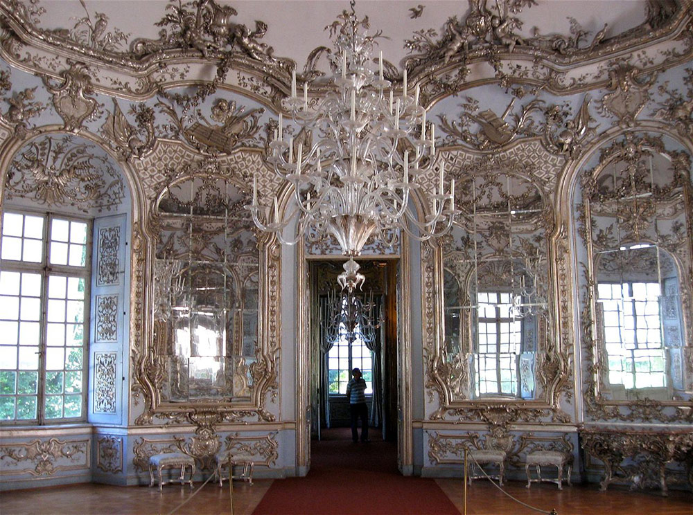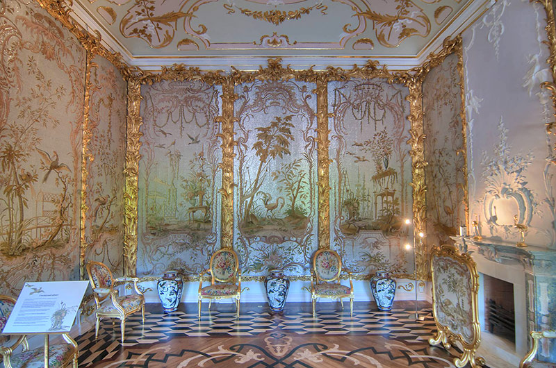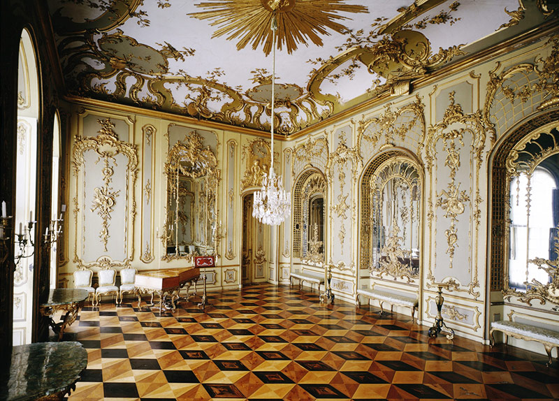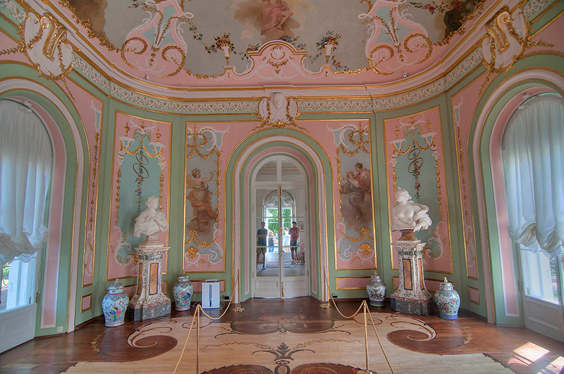 À la différence du style baroque avec sa palette de couleurs riches, le rococo de l’intérieur se distingue par ses couleurs pastel. Les intérieurs historiques des palais et des demeures de campagne du XVIIIe siècle se distinguent par une combinaison de ces couleurs: