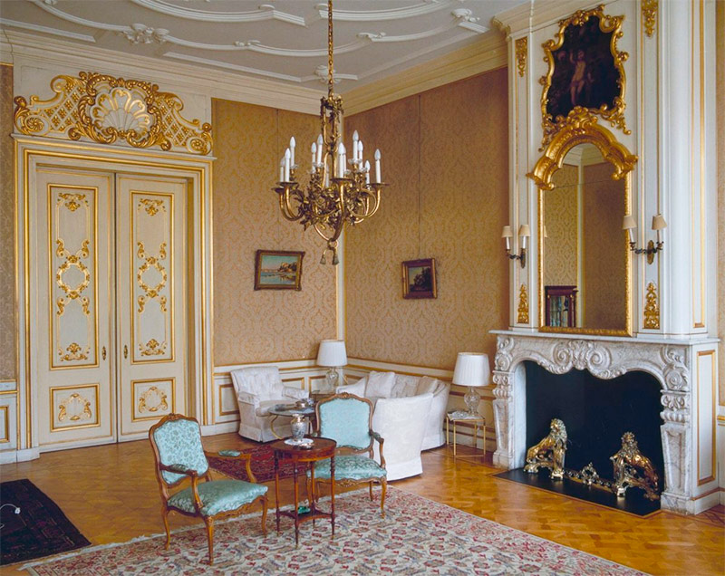 Le plan des murs est une œuvre d'art rococo. Les murs ont été décorés avec divers éléments en stuc, peintures, peintures, décor, miroirs, papier peint à motifs en soie et papier. Habituellement, le plan du mur était divisé visuellement en plusieurs segments, chacun remplissant un certain type de décor.